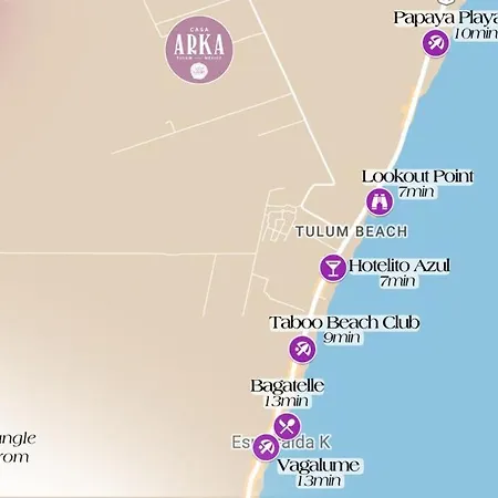 This villa is located a 10-minute ride from the Crystal Cenote and a 15-minute ride from the Escondido Cenote. The property is nestled 4.2 km from natural attractions like the white sand Paradise Beach. Casa Arka Villa & El Gaston Villa is a 20-minute drive from the national park "Parque Nacional de Tulum".